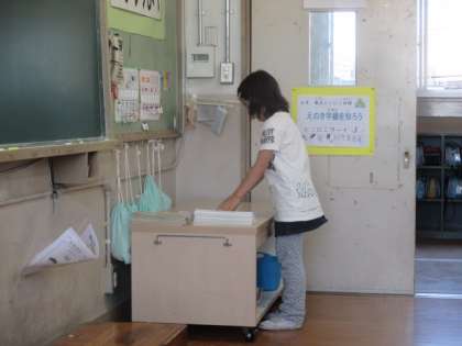 今日は,社会で使った学習道具をそろえてくれた人がいました。この人がいるから先生はノートを見直しやすいし,次の人もきれいに置こうと心がけられますね。