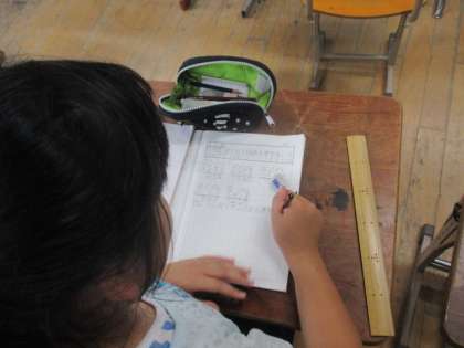 今日は,繰り上がりが2回の筆算をしました。繰り上がりが1回の計算方法と同じであること知りました。
