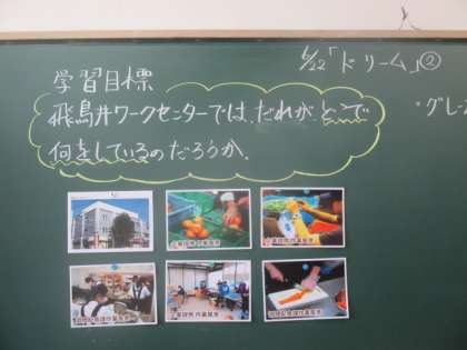 今日は,飛鳥井ワークセンターはどこにあって,何をしている施設なのか調べました。全国で唯一の施設であること,世界的にも評価されている施設であることを知りました。
