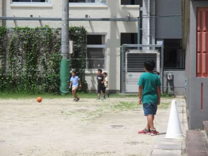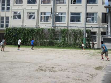子どもたちの昼休みの様子です。暑さに負けず運動場で遊んでいます。遊び終わった後はしっかり水分補給をしています。
