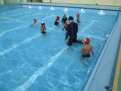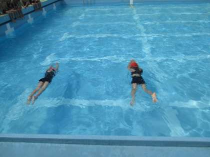 ちょっと泳ぎらしくなってきました。体の力を抜いて,水に浮く感覚をつかめれば,あとはスーと進んでいきます!先生の股の間もくぐれるようになりました。