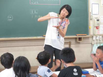 2年生では,今「かさ」の学習をしています。「長さ」でcmやmmの単位を習いましたが,「かさ」ではLやdLの単位が出てきます。Lマスを手にして,その量感をつかんでいきます。