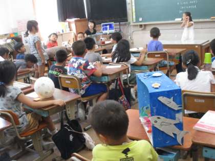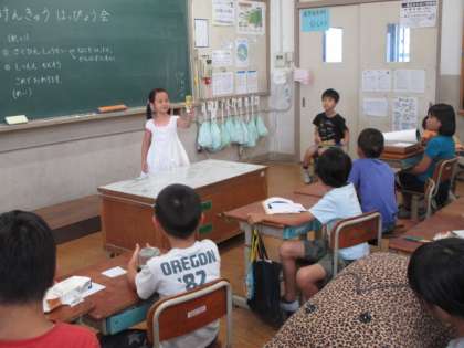 夏休みの宿題でつくった自由研究の作品をみんなの前で発表しました。工夫したところや苦労したことなど,一生懸命紹介してくれました。友だちの発表を聞きながら,来年の構想を練っているのでしょうね。