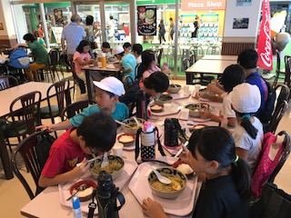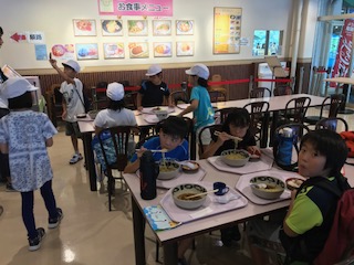 水族館での昼食です。みさきでは食べられなかったラーメンが大人気でした。見学をおえ、京都に向かいます。