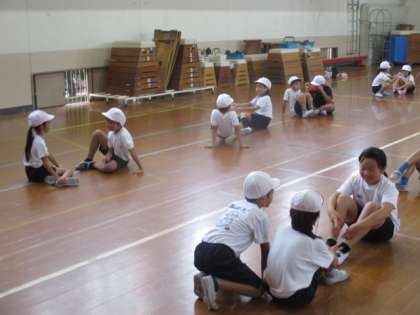 いつも練習の合間には踊りをふりかえったり,友だちと振り付けのポイントを話し合ったりしています。その話し合いが次の練習に活かされてみるみる上達しています。