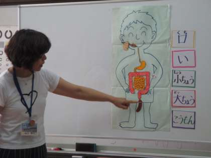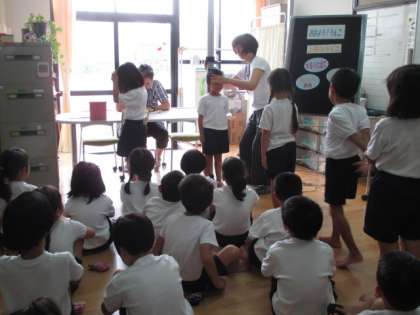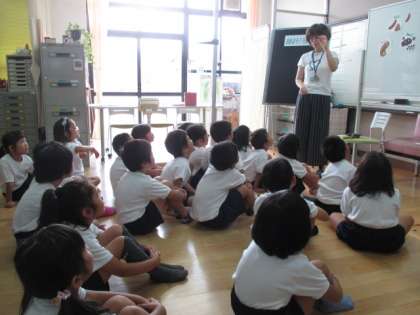 4月から比べると,みんな少しずつ大きくなっていました。保健室でのお話は『おはよう!うんこ』でした。食べ物が口から入りうんちになって出てくるお話です。いいバナナうんちを毎日出すように,野菜を食べたりお水をしっかり飲んだりしましょう。