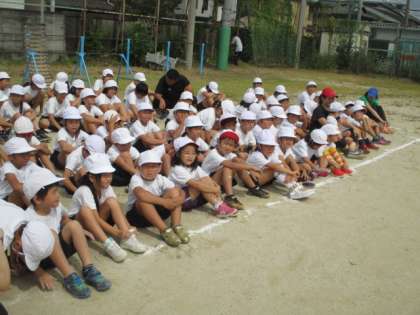 2年生は,去年の運動会を思い出して,今年の応援の仕方を練習しました。赤も白も,とっても大きな声を出して頑張りました。