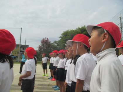 全校練習がありました。行進練習をしたり,応援練習をしたりしました。