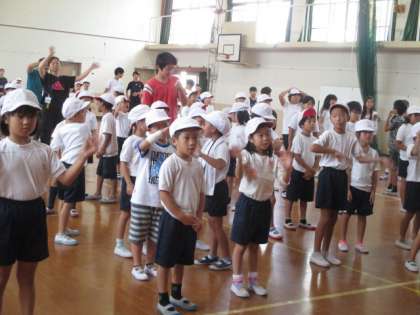 2年生は2回目なので,前で踊ってくれるお兄さんたちをしっかり見ながら,どんどんまねをしていってました。早い動きのところも,なかなか上手でしたよ。