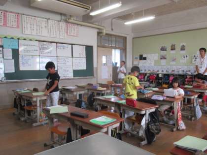 今日はベーシックの前の時間に配り物をしてくれていました。その子たちの中で配られたものを綺麗に整理してくれる子どもたちがいました。