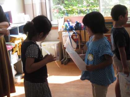国語の『うみのかくれんぼ』の最後の学習は,自分たちで作った『かくれんぼカード』を友だちと紹介し合いました。友だちにカードの紹介をするのはとっても楽しいですね。