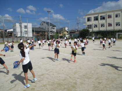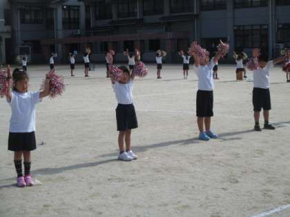 きらきらのポンポンを付け,本番通りのリハーサルをしました。踊りはバッチリ,後はピースな笑顔をお楽しみに!