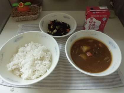 4時間目頃から,給食室前の廊下にはカレーのいい香りがしていました。子どもたちは,喜んで食べていました。