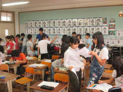 英語の学習です。オリジナルTシャツのデザインを考えました。そのデザインを英語で紹介し合いました。楽しい学習でした。