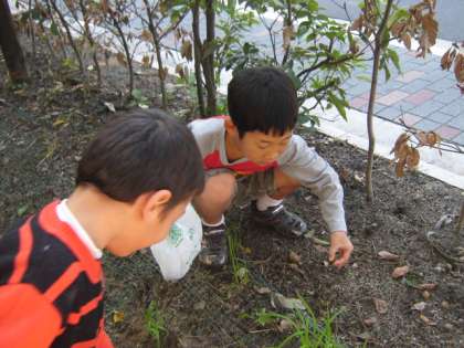 きょうの1・2じかんめのせいかつかのじかんに,しもがもじんじゃまであきをみつけにでかけました。きもちのいいあきばれの天きのなか,おちばやどんぐり,まつぼっくり,ねこじゃらしなどを見つけることができました。きょう見つけたあきをつかってつぎのじかんには,またいろいろなものをつくりましょう。