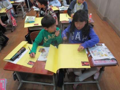 今日は,スーパーで見てきたことを画用紙にまとめました。最終的にはリーフレットにして完成です。子どもたちは写真を使って上手にまとめていました。