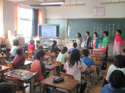 長期宿泊に向けて,クラスの課題とその課題を解決する方法を考え,発表しました。グループごとにパワーポイントを使い,説明することができました。コンピュータを使い,提案できる力を高めてほしいと思います。
