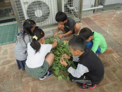 今日は,枝豆を収穫しました。そうじ時間に草抜きをしてきたおかげで,多くの枝豆を収穫することができました。
