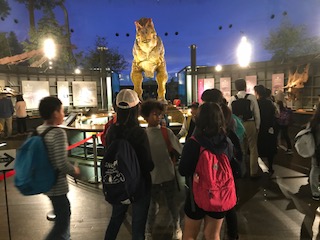 恐竜博物館をグループで見学しました。恐竜の骨や足跡の化石,恐竜が生きていた頃を復元したジオラマなど,興味深く見入っていました。恐竜がいた時代にタイムスリップした子どもたちです。
