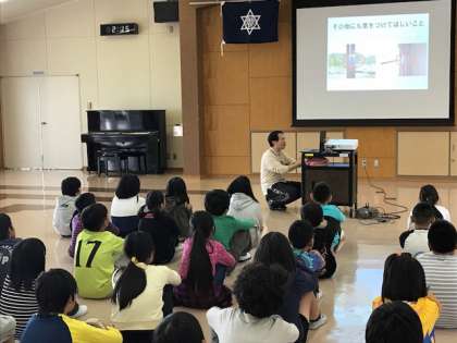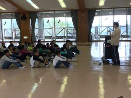 奥越高原青少年自然の家に打擲し,入所式を行いました。しっかりとした5年生らしい態度で式に臨めました。オリエンテーションでは,ベッドメイクの仕方などを聞き,早速部屋で自分のベッドをつくりました