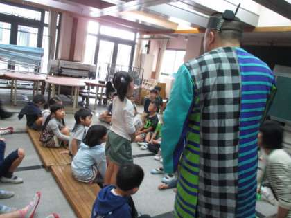 2年生の演劇ワークショップ「チョイチョイ星人」を観て,大笑いしていた1年生。最後にしっかり感想を発表することができました。そして,お互いに「ありがとう」のお礼の言葉をかわしました。