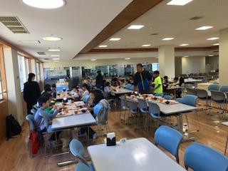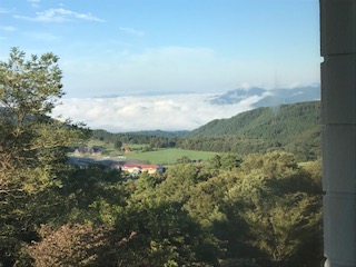 2日目の朝を迎えました。子どもたちは全員元気です。青空が広がり,雲海の見える良い天気に恵まれました。朝食をしっかり食べて今日の山登りに備えます。きっと良い景色が見られることでしょう。