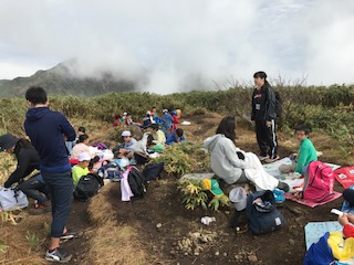 本格的な山登りは,ほとんどの子どもたちが初めてでしたが、全員が昼食場所の釈氏ヶ岳頂上に登りきりました。1448メートルです。
