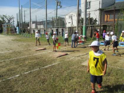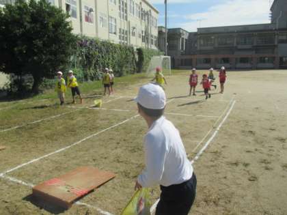 今日から幅跳びがはじまりました。審判係と選手に分かれて競技を楽しみました。審判係は,グランド整備やスタート合図などしました。選手は助走や踏切に気を付けていました。