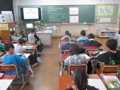 算数科で「何倍でしょう」の学習をしました。今まで二つの物を比べる学習が中心でしたが,今日は3つのものを比べる学習でした。関係図を使って考え,問題を解いていきました。