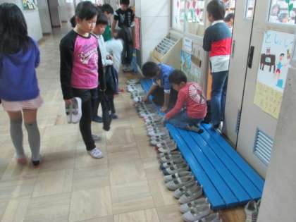 今日は黒板を綺麗にしてくれた人と,みんなの上靴を綺麗に並べてくれた人がいました。どちらも使う人の気持ちを考えた,とても素敵な行動でした。