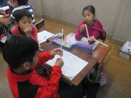 今日はあいにくの雨で実験ができなかったので実験に向けて温度計の見方を練習しました。次回に向けてよい準備ができました。