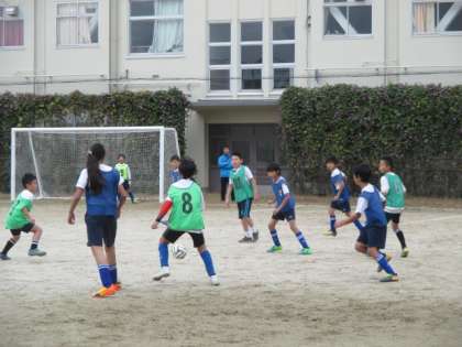 土曜日が雨天だったため,日曜に延期された全市交流会。冬らしいしぐれ模様の天気の中,子どもたちはグランドを駆け回りました。4年生チームは2敗,6年生チームは1勝1敗という結果に終わりましたが,随所に好プレーが見られ,応援の声が盛り上がっていました。