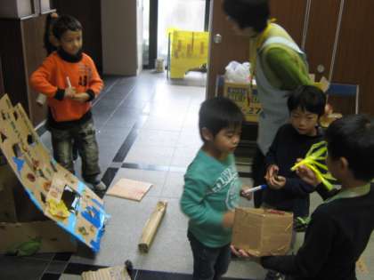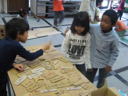 さて,きょうの3・4じかんめはようせいほいくしょのおともだちにきてもらい,おみせをオープンしました。やさしくおしえてあげるすがたや,えがおでせっしているすがたがみられ,「ほいくえんの子たちがえがおできてくれてうれしかった。」「おみせをしてたのしかった。」というかんそうが子どもたちからでました。