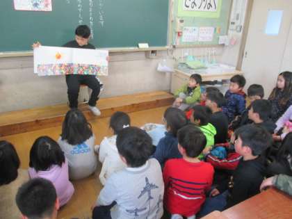 3年生に英語の本を読み聞かせしています。6年生のすごいところを見せてくれました!