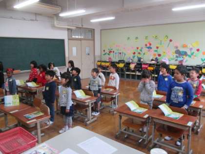 国語の学習です。「あさ」という詩をみんなで音読しました。元気な声がいっぱいに広がりました。声を出すことをこれからも大切にしていきたいと思います。