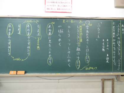 国語科の学習では、「ふるさと」の詩を学習しました。詩に隠された作者の思いや工夫など見つけました。子どもたちは,リズムや文字数,語尾に注目しながら秘密を探っていました。