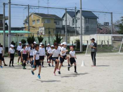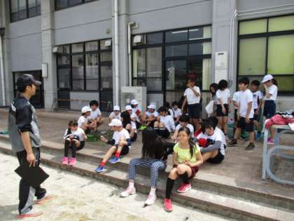 50m走のタイムを計りました。昨年度よりも速くなっているようで,喜ぶ姿が見られました。