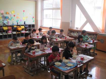 2回目の給食です。当番や返し方など1度やればきちんとできる1年生たちです。5時間目もがんばれますね。