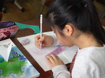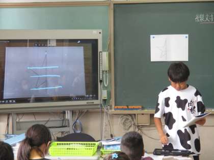 今日は線対称な図形の作図をしました。何度もかいているうちに,大切なポイントがわかってきたようです。しっかり練習してほしいと思います。
