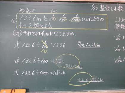 今日で「整数と小数」の学習が終わりました。明日はまとめの学習をして,明後日テストにのぞみます。