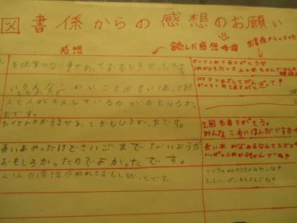 図書係では,本のアンケートをしています。読んだ本の感想を書いて返事を図書係の子どもたちがしてくれています。子どもたちのやりとりが素敵ですね。