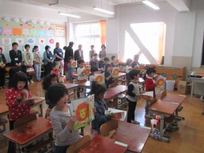 小学校初めての参観日です。子どもたちは,緊張とお家の人に会えるうれしさでいっぱいです。元気な音読とひらがなの学習をがんばりました。