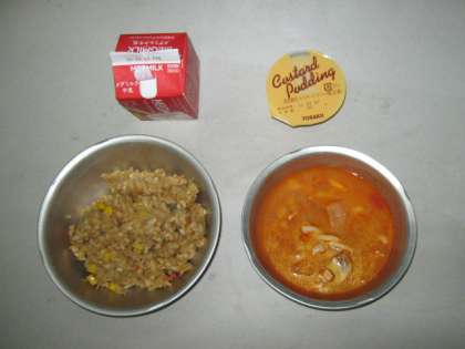 今日の給食は,カレーピラフ・牛乳・トマトスープ・プリンでした。カレーピラフは,台風がきたときのために学校に備えておいた,無洗米やかんづめ・乾燥野菜を使って学校で炊きました。トマトスープの中には,たくさんの材料が入っていました。その中のひとつにマッシュルームが入っていました。給食で生のマッシュルームを使うのは,はじめてでした。