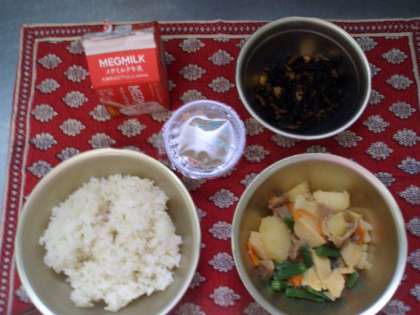 今日は,「煮つけ」と「ひじき豆」デザートにりんごセリーがついていました。おばんざいのひじき豆も残ることなく,きれいに食べていました。りんごゼリーも,楽しみながら食べていました。