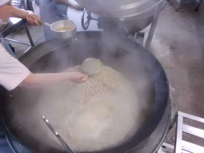 ミートボールとキャベツのトマト煮に使われているキャベツは,春キャベツでした。春キャベツは,やわらかくて甘みがあるのが特徴です。ミートボールは,手作りです。ふんわりとした食感になるように,調理員さんは水の量を調節したり優しく丸めたりする工夫をしています。また,丁寧に灰汁もとってくださいました。写真は,その時の様子です。とってもおいしく仕上がっており,子どもたちも大喜びです。