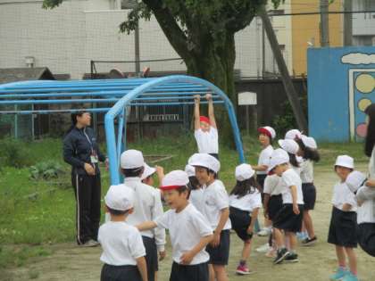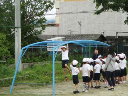 体育の学習です。うんてい遊びです。自分の体を支える力は,とても大切です。出来なかった子は,後で一生懸命練習していました。