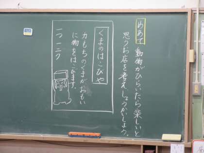今回はここから想像を膨らませて,自分たちが考えた〇〇屋さんの看板を作りました。