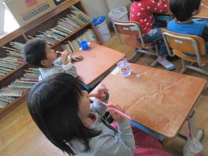 養護の先生から,歯みがきの大切さを教えていただきました。歯は健康の源です。これから,毎日,給食のあと歯磨きをします。健康な歯を維持していきましょう。