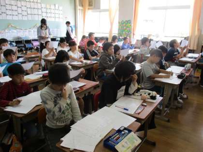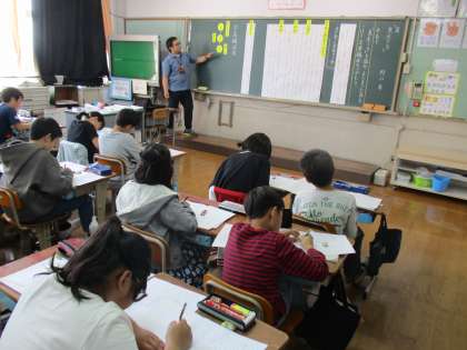 国語科「見立てる」の学習で文章の構成について学んでいます。各段落の内容を読み取って,どのような意味があるのかを考えました。自分の考えを書いて伝えようとする姿が見られました。