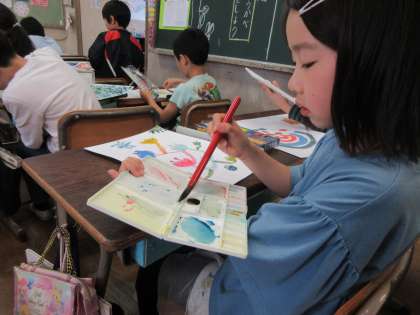 水の量を変えながら,にじませたり,はっきりと塗ったり。